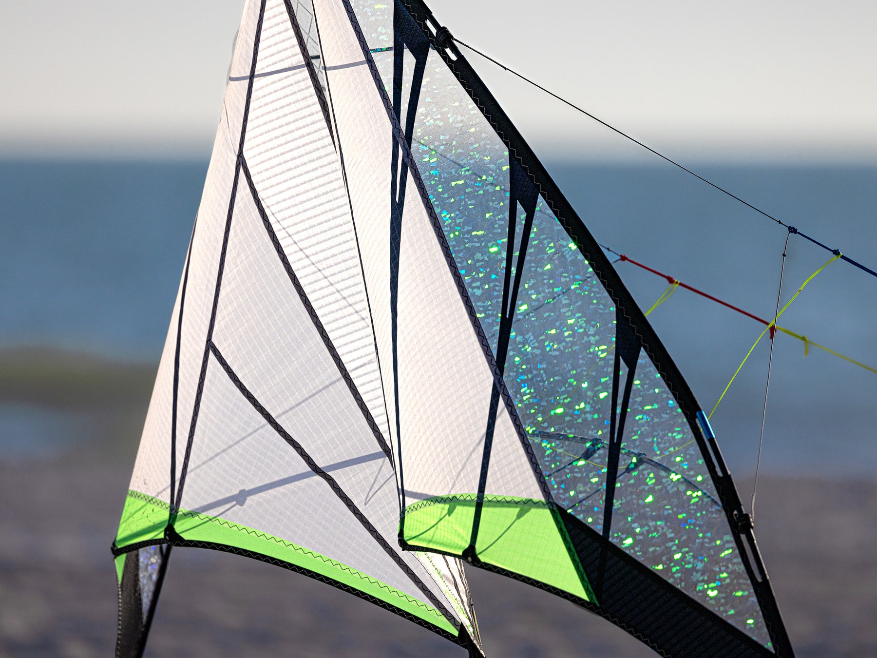 Prismatex film is incredibly light and thin- only 13 microns. That’s roughly twice the thickness of the monofilm used in our iconic Vapor ultralight back in the 90’s. But it’s super low stretch and plenty strong for a low wind kite as long as you handle it with care. Just assemble your kite carefully, avoid strong winds and steer clear of puncture hazards like barnacles and brambles.